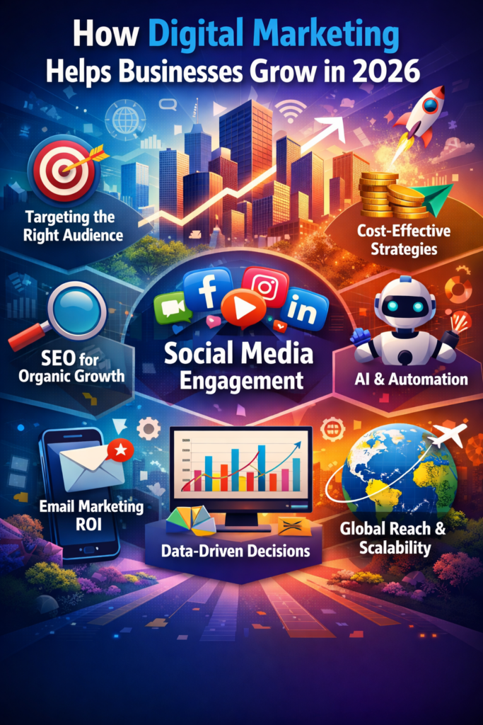 Overall, digital marketing has become the foundation of business growth in 2026. It helps businesses reach the right audience, reduce costs, build trust, and deliver better customer experiences. Whether it is through search engines, social media, content, email, or AI-driven automation, digital marketing empowers businesses to grow smarter and faster. Companies that invest in digital marketing today are not only increasing their visibility but also building sustainable success for the future.
